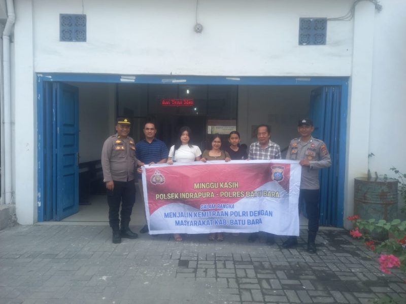 BATU BARA – Kapolsek Indrabpura Polres Batu Bara AKP Reynold Silalahi, S.H, diwakili Ipda A.A. Siregar, selaku Pawas melaksanakan kegiatan Minggu Kasih bersama Personil Lainnya di Gereja HKBP Kelurshan Indrapura, Kecamatan Air Putih, Batu Bara, Sumatera Utara, Minggu (27/7) Pukul.10.00 Wib.
