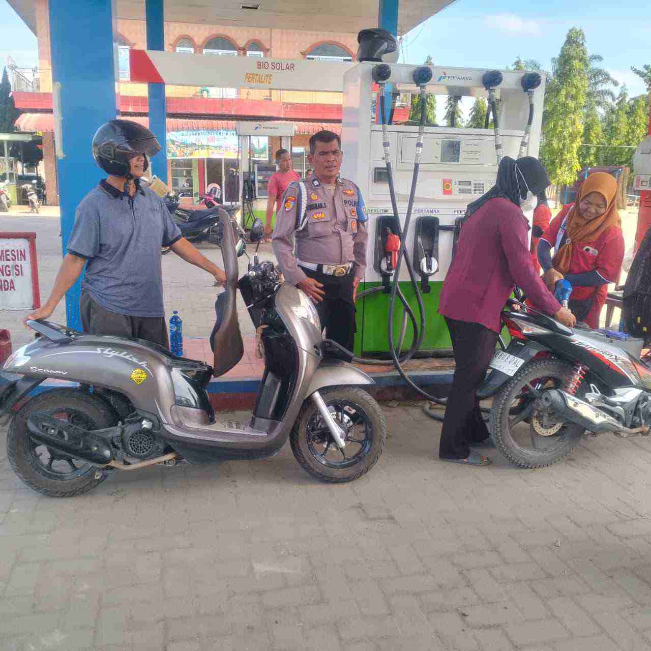 Petugas juga mengatur antrean kendaraan di SPBU agar tertib dan tidak mengganggu arus lalu lintas.