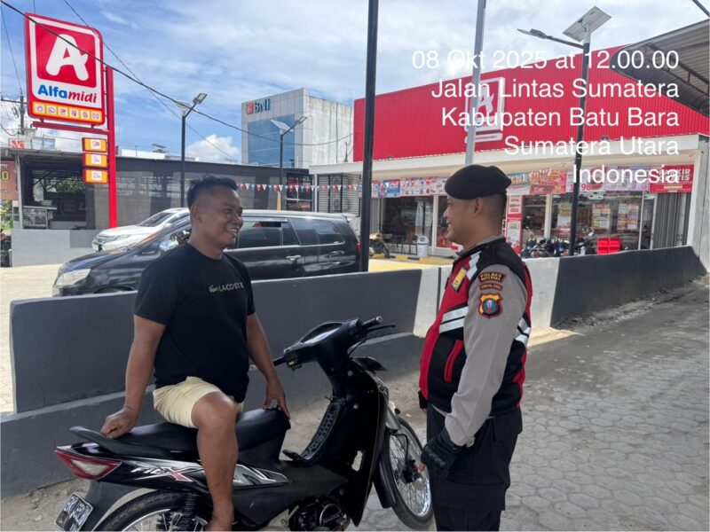 Batu Bara, 8 Oktober 2025 – Satuan Samapta (Sat Samapta) Polres Batu Bara melaksanakan kegiatan cooling system sekaligus memberikan himbauan pesan Kamtibmas kepada masyarakat sebagai upaya menciptakan suasana aman, tertib, dan kondusif di wilayah hukumnya. Kegiatan ini berlangsung mulai pukul 12.00 WIB hingga selesai di area Toko Buah Indrapura, Rabu (8/10/2025).