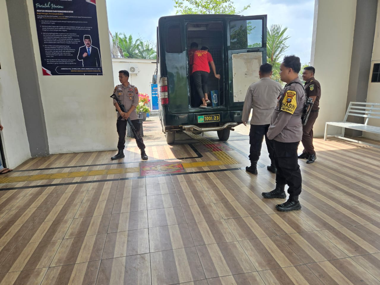 Sebanyak 19 tahanan laki-laki dan 2 tahanan perempuan dikawal dan diamankan selama proses persidangan. Personel gabungan memastikan tidak ada celah bagi tahanan untuk melarikan diri atau melakukan tindakan yang dapat mengganggu jalannya persidangan.