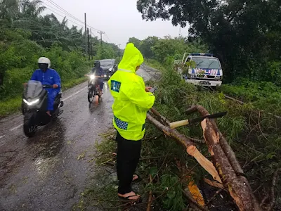 “Begitu mendapat laporan dari warga, kami langsung turun ke lokasi. Selain melakukan evakuasi pohon tumbang, personel juga mengatur lalu lintas dan memberikan imbauan kepada pengendara agar tetap berhati-hati, khususnya pada musim hujan seperti sekarang,” ujarnya.